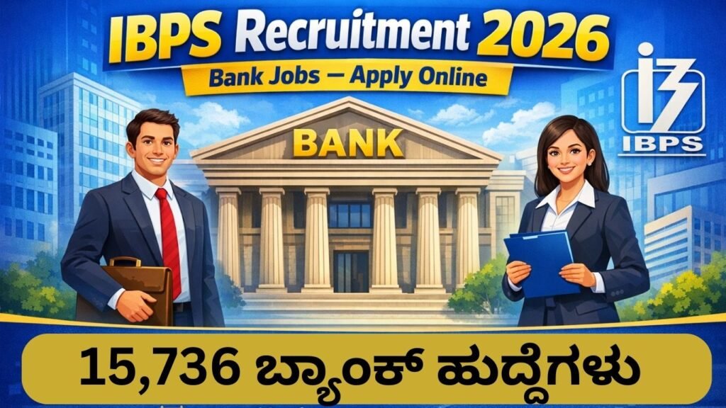 IBPS Recruitment 2026: 15,736 ಬ್ಯಾಂಕ್ ಕ್ಲರ್ಕ್ ಹುದ್ದೆಗಳ ಬೃಹತ್ ನೇಮಕಾತಿ – ಮಹಿಳೆಯರು ಪುರುಷರು ಇವತ್ತೇ ಅರ್ಜಿ ಸಲ್ಲಿಸಿ ಭಾರತದಲ್ಲಿ ಬ್ಯಾಂಕಿಂಗ್ ಕ್ಷೇತ್ರದಲ್ಲಿ ಸರ್ಕಾರಿ ಉದ್ಯೋಗ …