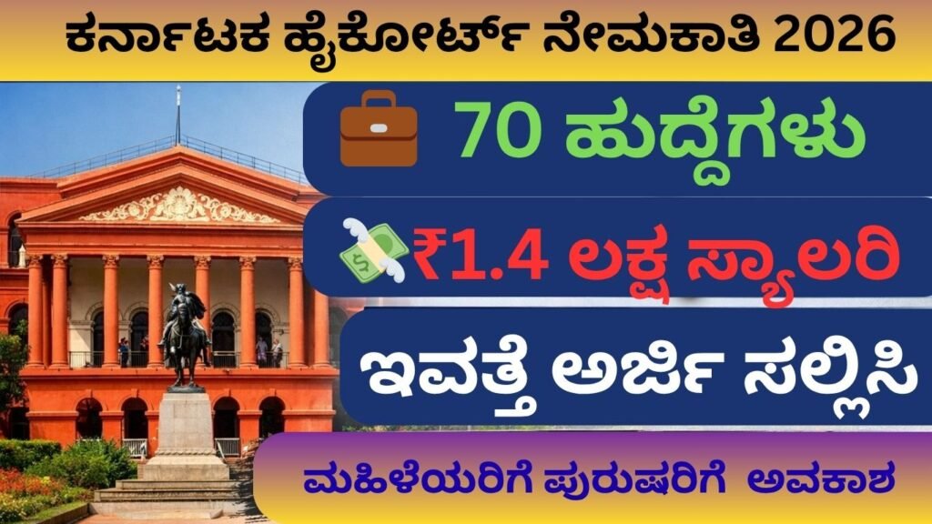 ಕರ್ನಾಟಕ ಹೈಕೋರ್ಟ್ ನೇಮಕಾತಿ 2026: ₹1.4 ಲಕ್ಷ ಸಂಬಳ – ಇವತ್ತೇ ಅರ್ಜಿ ಹಾಕಿ!