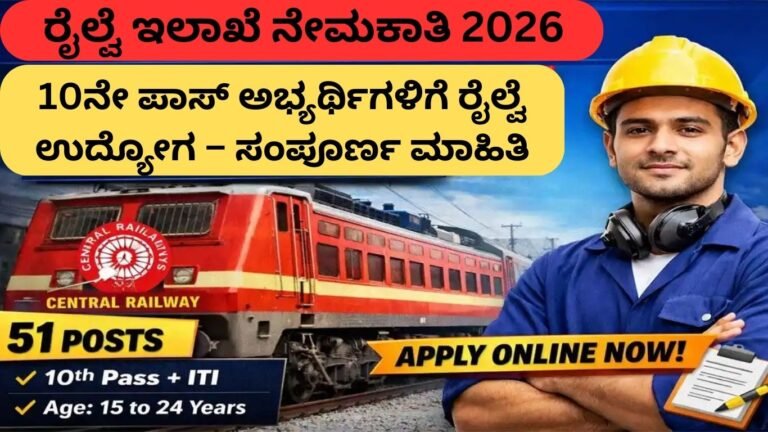 Central Railway (RRC) Recruitment 2026 – 51 ಹುದ್ದೆಗಳ ನೇಮಕಾತಿ, ಯಾವುದೇ ಪರೀಕ್ಷೆ ಇಲ್ಲ ಭಾರತದಲ್ಲಿ ಸರ್ಕಾರಿ ಉದ್ಯೋಗ ಪಡೆಯಲು ಬಯಸುವ ಯುವಕರಿಗೆ ರೈಲ್ವೆ ಇಲಾಖೆಯಿಂದ …