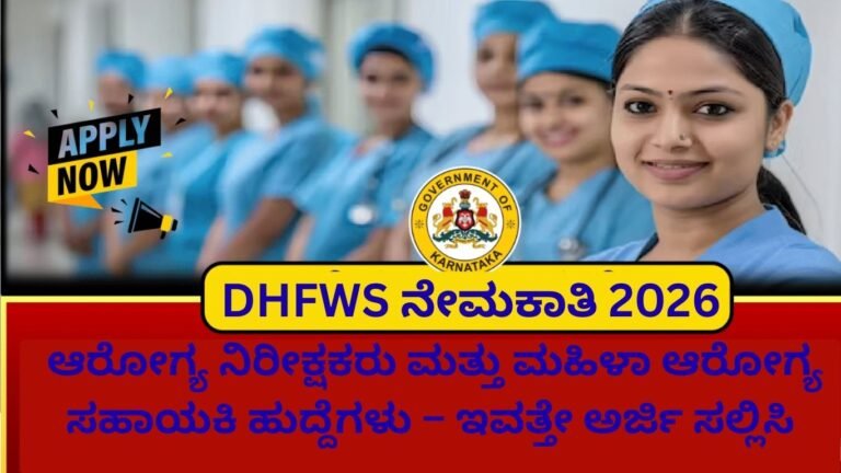 DHFWS ನೇಮಕಾತಿ 2026: ಆರೋಗ್ಯ ನಿರೀಕ್ಷಕರು ಹಾಗೂ ಕಿರಿಯ ಮಹಿಳಾ ಆರೋಗ್ಯ ಸಹಾಯಕಿ ಹುದ್ದೆಗಳು – ಇವತ್ತೇ ಅರ್ಜಿ ಸಲ್ಲಿಸಿ ಕರ್ನಾಟಕದಲ್ಲಿ ಸರ್ಕಾರಿ ಉದ್ಯೋಗ ಹುಡುಕುತ್ತಿರುವ ಅಭ್ಯರ್ಥಿಗಳಿಗೆ …