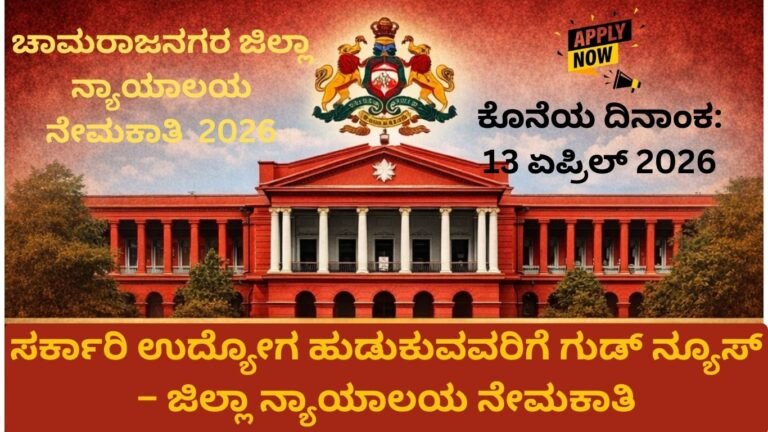 ಚಾಮರಾಜನಗರ ಜಿಲ್ಲಾ ನ್ಯಾಯಾಲಯ ನೇಮಕಾತಿ 2026: ಸ್ಟೆನೋಗ್ರಾಫರ್, Typist, Peon ಹುದ್ದೆಗಳು – SSLC, PUC ಪಾಸ್ ಅಭ್ಯರ್ಥಿಗಳಿಗೆ ಸರ್ಕಾರಿ ಉದ್ಯೋಗ ಅವಕಾಶ ಕರ್ನಾಟಕದಲ್ಲಿ ಸರ್ಕಾರಿ ಉದ್ಯೋಗ …