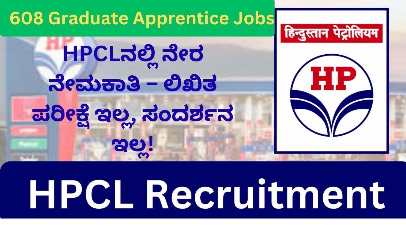 ಭಾರತದ ಪ್ರಮುಖ ಮಹಾರತ್ನ ಸಾರ್ವಜನಿಕ ವಲಯದ ತೈಲ ಕಂಪನಿಗಳಲ್ಲಿ ಒಂದಾದ Hindustan Petroleum Corporation Limited (HPCL) 2026 ನೇಮಕಾತಿಗೆ ಭರ್ಜರಿ ಅವಕಾಶ ಘೋಷಿಸಿದೆ. ಒಟ್ಟು 608 ಗ್ರಾಜುಯೇಟ್ ಅಪ್ರೆಂಟಿಸ್ ಟ್ರೈನಿ ಹುದ್ದೆಗಳಿಗಾಗಿ ಅಧಿಕೃತ ಅಧಿಸೂಚನೆ ಬಿಡುಗಡೆಯಾಗಿದೆ.